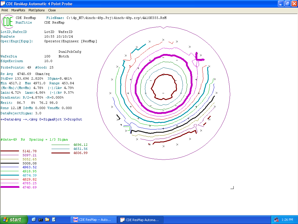 4寸晶圆样品表面镀膜后方阻mapping测量结果