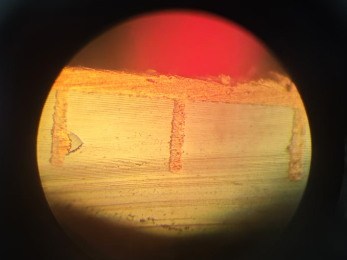 采用多靶材共焦溅射,在深宽比6:1的硅孔内沉积种子层电镀后的效果图